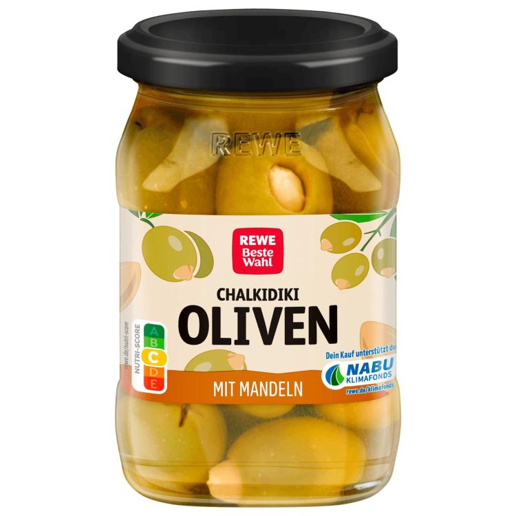 REWE Beste Wahl зелени маслини, пълнени с бадеми, 160 г