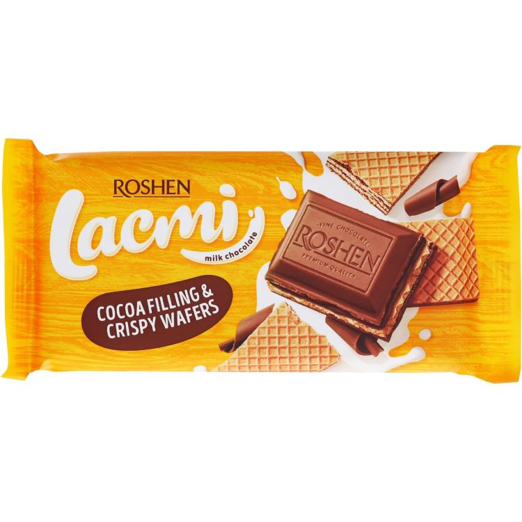 Roshen Lacmi млечен шоколад с какаов пълнеж и вафла (90 г)
