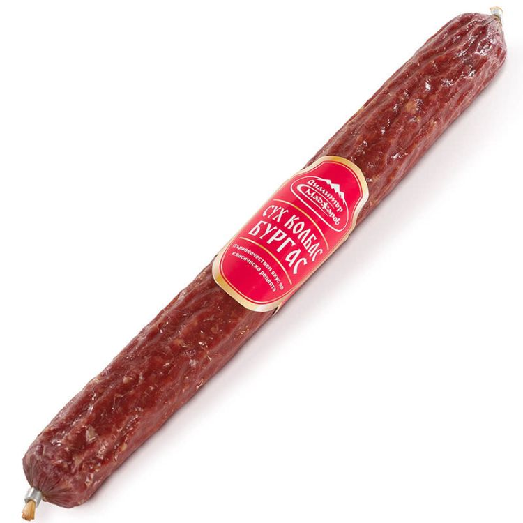 Салам Бургас Маджаров – традиционен колбас, приготвен от подбрано свинско и говеждо месо, с балансиран вкус и лек пушилен аромат. Произведен по класическа рецепта с внимателно подбрани подправки и висококачествени съставки. Подходящ за закуска, сандвичи или студени плата.