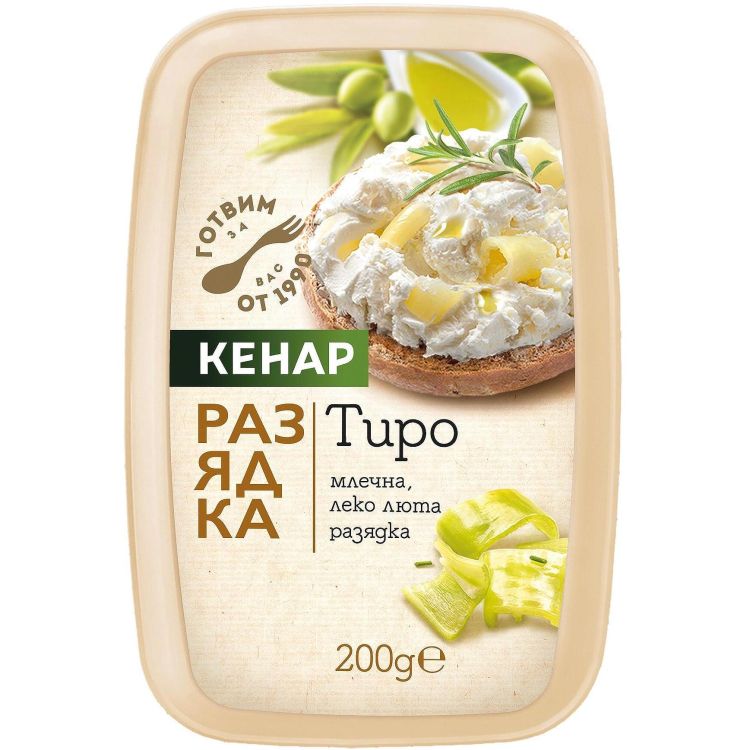 Съставки: високомаслен имитиращ продукт за разядка 39% (вода 65,4%, сухо обезмаслено МЛЯКО 20%, МАСЛО ОТ КРАВЕ МЛЯКО 10%, сол 4%, емулгатори: калциев хлорид 0,42%, регулатори на киселинността: млечна киселина 0,2%, сирищен ензим 0,19% и стартерна култура (закваска) 0,003%), имитиращ продукт за разядка тип Филаделфия 19% (ИЗВАРА, кокосово масло, закваска, вода, стабилизатор Филаделфия 60 ( модифицирано нишесте, МЛЕЧЕН протеин, сол, антиоксидант: лимонена киселина, стабилизатор: карагенан, ксантан гума)), чушки трушия 19%, имитиращ продукт за разядка тип Фетата 16% (КРАВЕ МАСЛО, сухо МЛЯКО, МЛЕЧЕН протеин, сол, млечна киселина, калциев хлорид, стартерна култура, сирищен ензим), майонеза 6% (рафинирано слънчогледово масло, вода, сухо МЛЯКО, захар, сол, емулгатор: пектин, регулатор на киселинност: оцетна киселина, консервант: калиев сорбат, антиоксидант: лимонена киселина), чесън, бял пипер, консервант: калиев сорбат, екстракт от люта чушка. Може да съдържа следи от глутен, яйца, ядки, фъстъци, сусам, синап.