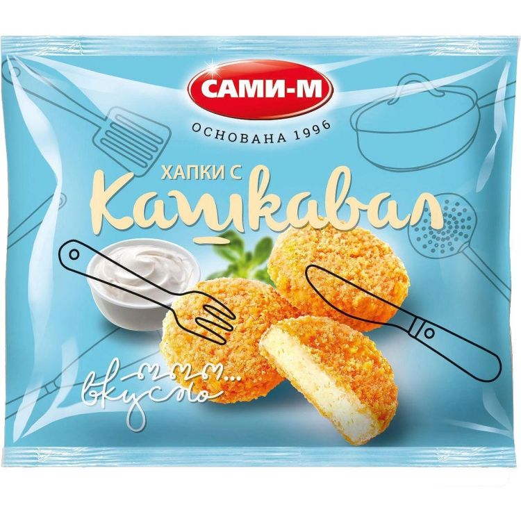 Съставки: имитиращ продукт (с произход от ЕС) (вода, палмова мазнина, пшенично нишесте, млечен протеин, сол, емулгатор: полифосфат, натриев цитрат, аромат, консервант: сорбинова киселина, оцветител: β-каротин), панировка 38% (пшенично брашно, модифицирано нишесте, сол, мая, подправки), слънчогледово олио, кашкавал 2% (краве мляко, закваска), картофено нишесте, растителни фибри, млечни протеини, метилцелулоза. Може да съдържа следи от соя, сусам, целина.