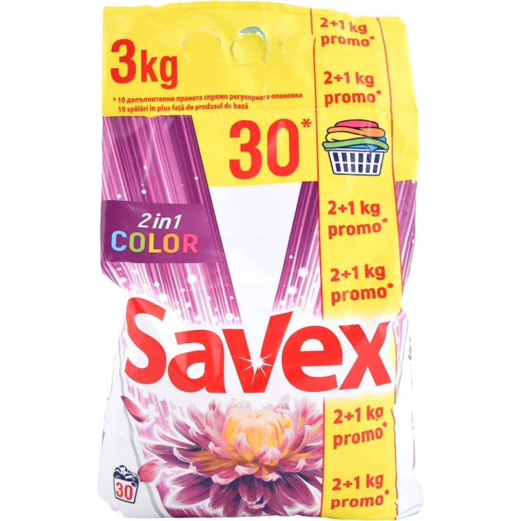 Savex 2in1 Color прах за пране, 30 пранета (3 кг) вече не се предлага.