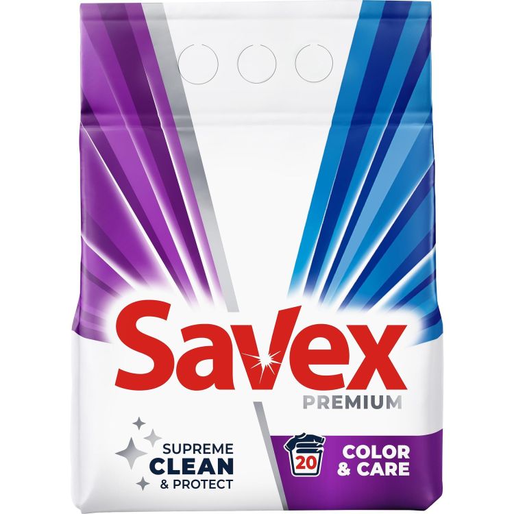 Savex 2в1 Color & Care е прах за пране, който лесно отстранява петна от тъканите. Препаратът притежава 2in1 действие, което осигурява отличното изпиране на тъканите, запазвайки естествените им цветове.. Подходящ за автоматични перални машини. Благодарение на технологията Parfum Lock с парфюмни капсули свежестта се заключва в тъканите за много по-дълго време.