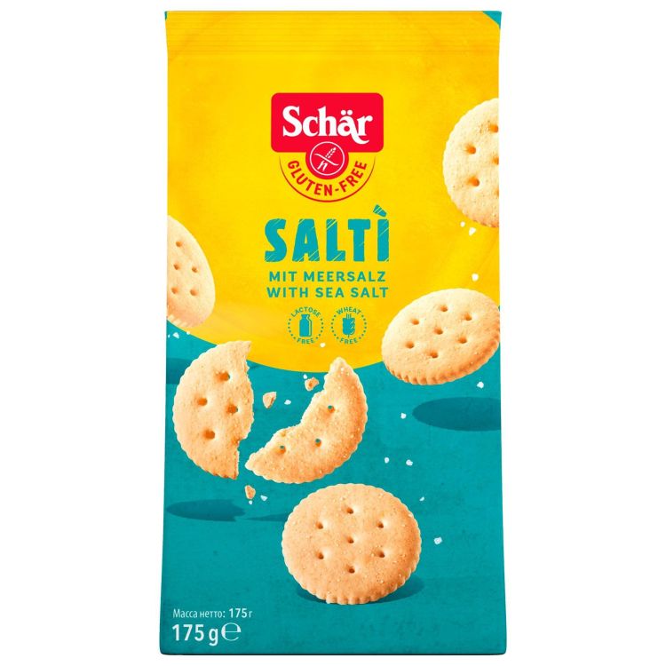 Schaer солен снакс. Бисквити с морска сол, без лактоза, без пшенично брашно, без глутен.