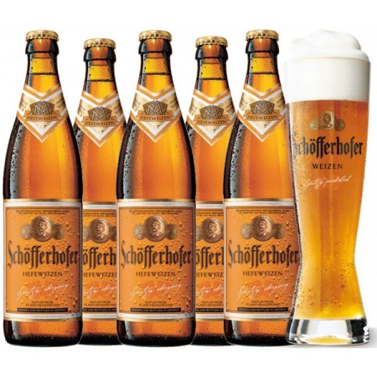 Schöfferhofer Немска пшенична бира Hefeweizen се приготвя по баварски традиции с използване на пшеничен малц. Живата мая дава "кондициониране" на бутилката, гарантиращо освежаващ плодов вкус. Утайката от дрожди също води до "облачния" характер на бирата. Характеризира се като: млада, светла, чувствена и в същото време модерна и градска. Произвежда се от 1978 г. във Франкфурт, известен като"пристанище на древните франки". Притежава фин и елегантен характер, отличителен аромат на пшенична бира и отчетлива нотка на карамфил. Основната съставка е микс от пшеничен и ечемичен малц. Типичният леко сладък плодов аромат се постига чрез използването на пшеничения малц и неговата ферментация (извършва се с използването на мая за горна ферментация). Чудесната пропорция на СО2 прави пшеничната бира толкова ясно искряща и много свежа. Алк. 5 %.