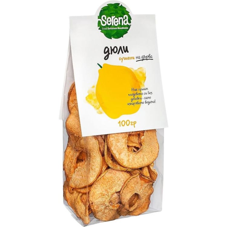 Описание: Дюлите се почистват от дръжки и листа, измиват се, почистват се от семенни гнезда и се нарязват на резени, след което се сушат. Процесът на сушене запазва всички минерали и витамини, без необходимост от добавяне на консерванти, като така се получава напълно натурален продукт – гаранция за здравословно хранене.