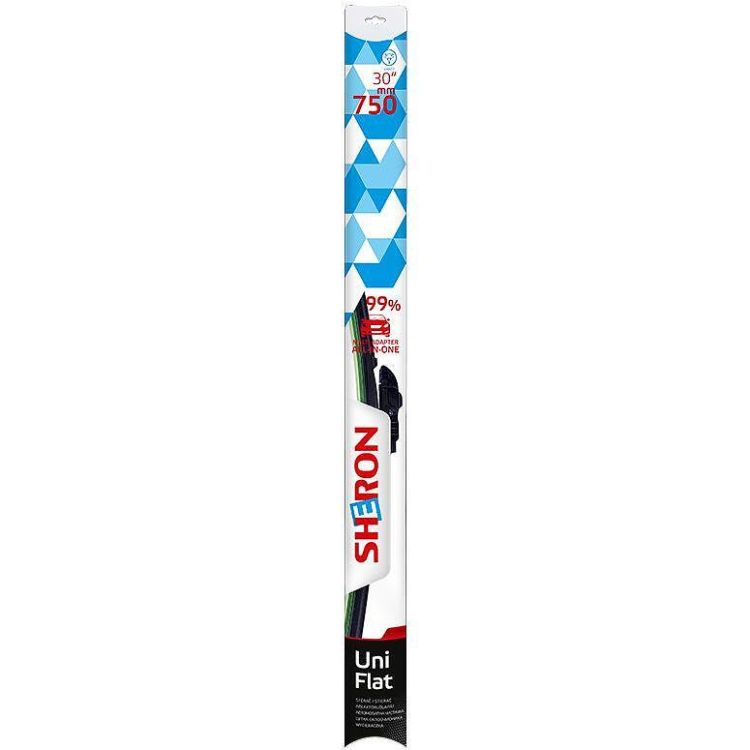 Sheron Uni Flat е модерен безрамков тип чистачка. Конструкцията ѝ действа като притискащ спойлер и няма подвижни съединения, които биха могли да блокират. Благодарение на универсалния адаптер монтажът е лесен и достъпен за всеки. Чистачката Sheron Uni Flat е съвместима с 99% от автомобилите. Гумата е обработена с графит, което удължава нейния живот, осигурява плавно почистване и намалява шума при работа.