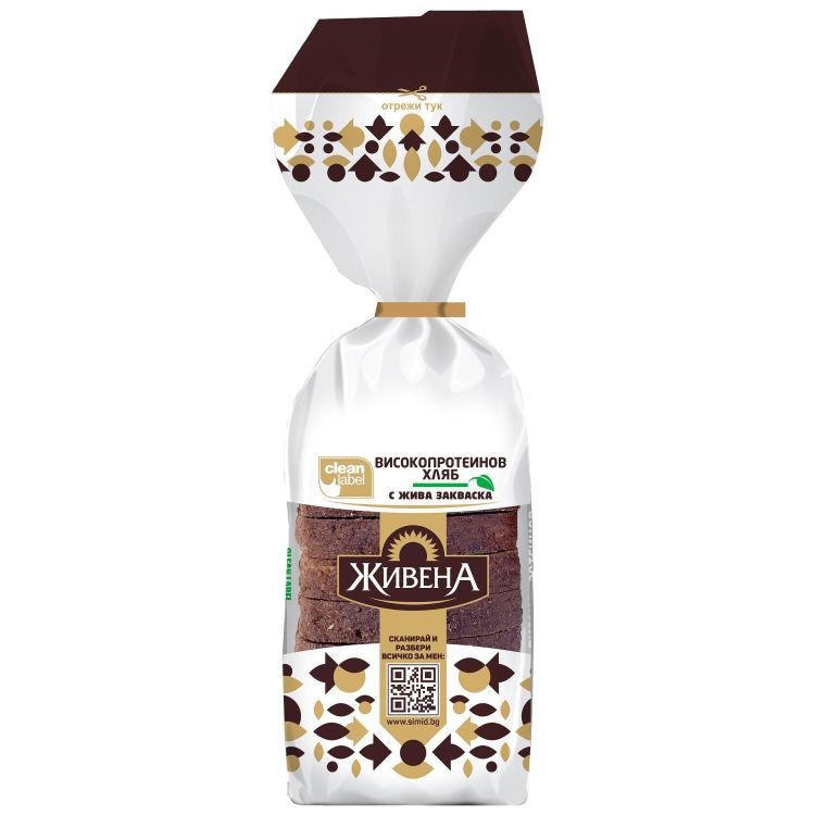 Симид Живена пълнозърнест хляб с жива закваска, високопротеинов (450 г)