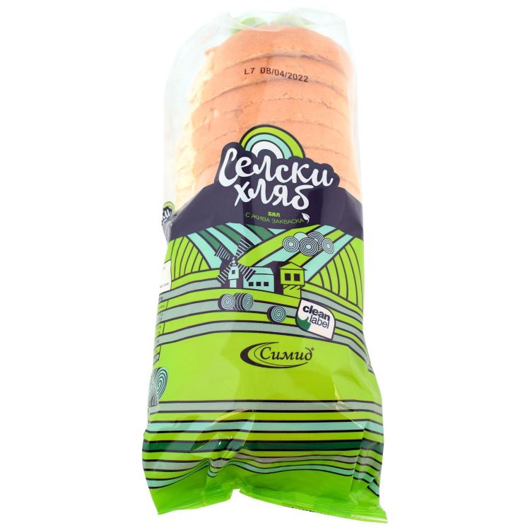 Съставки: 62% бяло пшенично брашно, вода, жива закваска, трапезна сол, хлебна мая.