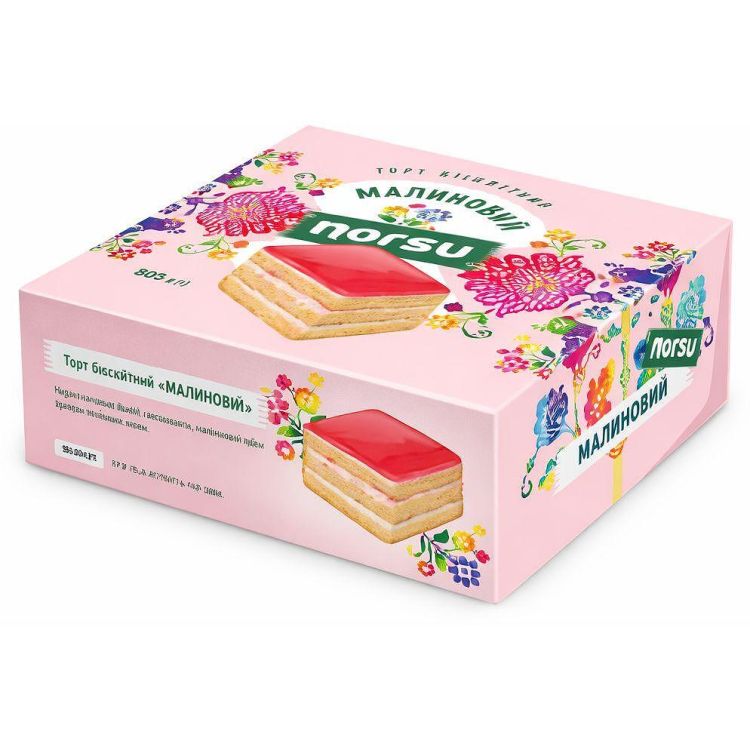 Нежен и въздушен ванилов блат, сиропиран със захарен сироп, слоен с фин сметанов крем и допълнен с малинов пълнеж. Торта с дълъг срок на съхранение, приготвена от блатове със сметанов крем и плодов пълнеж от малина.