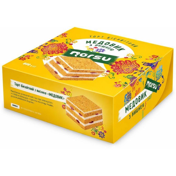 Медени блатове и фин варен крем – класическо съчетание с домашен вкус. Добавената вишна придава нежна текстура, лека киселинност и балансирана сладост. Торта с дълъг срок на съхранение, приготвена с медени блатове, нежен сметанов крем и плодов пълнеж от вишни.
