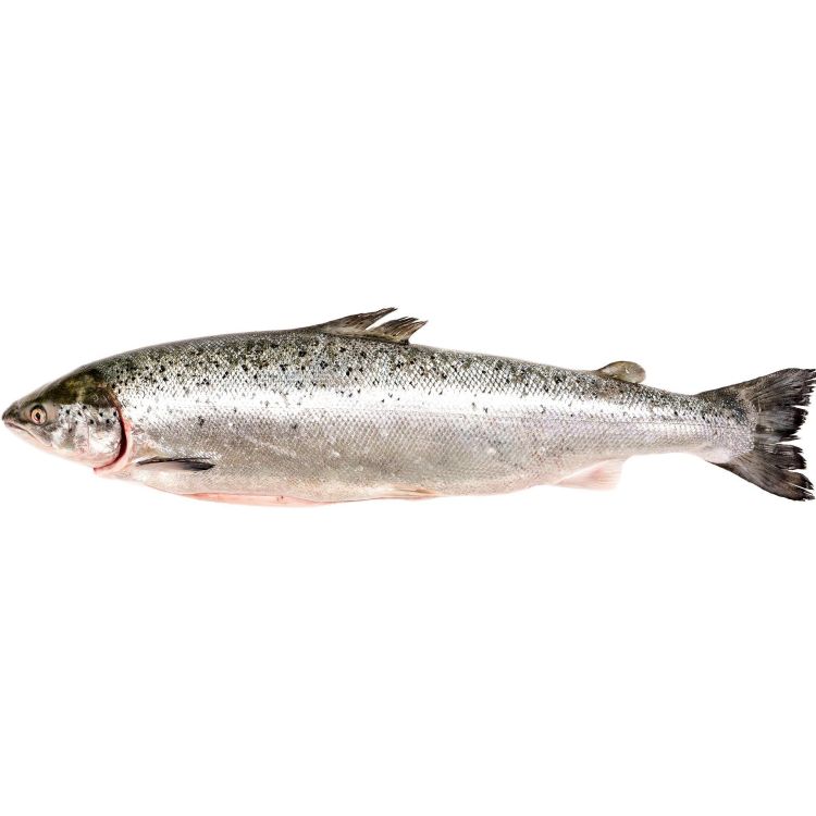 Сьомга цяла чистена, охладена, с глави, на килограм (1 кг)