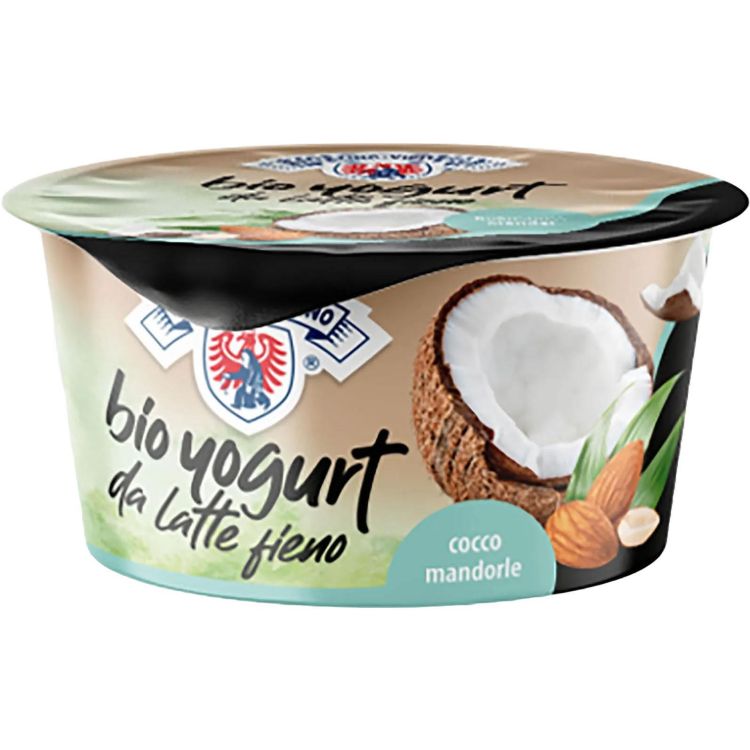 Био пълномаслено кисело мляко, произведено от мляко, хранено на сено, обогатено с кокос и бадеми, което придава неповторим вкус и кремообразна текстура. Продуктът е без глутен и от биологично производство.