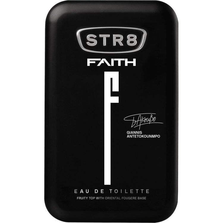 STR8 Faith Eau de Toilette предstавлява тоалетна вода за мъже, която притежава чувствен и елегантен аромат и поддържа кожата с неустоимо мъжествено ухание. Комбинацията от плодови връхни нотки и ориенталско-фужерна база си хармонизира с клсическите мъжки акорди и в същото време излъчва свеж и доминиращ аромат, с пленяващо и незабравимо ухание. Композицията е съставена от кардамон, зелена ябълка и мандарина, а в сърцевината се крият нотки от ром и индийско орехче. Завършващите акорди са от ванилия и мирта. Тоалетната вода пленява сетивата и оставя дълготраен аромат през целия ден. Насладете се на завладяващия аромат като използвате и останалите продукти от серията.