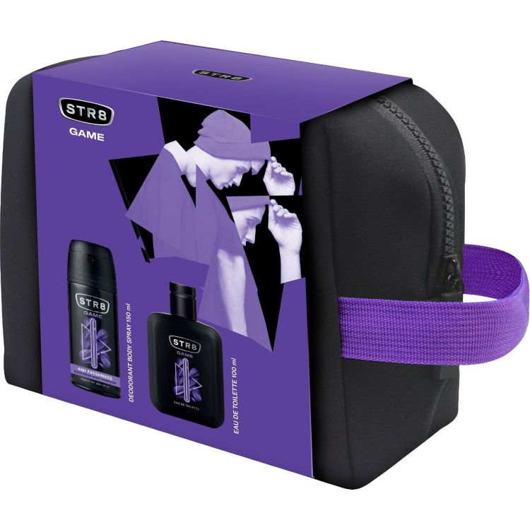 STR8 Game е свеж и енергизиращ аромат, предназначен за мъже, които не се страхуват да променят правилата и да следват собствените си цели. Комплектът включва тоалетна вода, дезодорант спрей за тяло и стилен несесер – идеален избор за подарък. Ароматът започва с успокояващи плодови нотки на ябълка, преминава през сърце от лавандула и тонка боб за мъжествено излъчване и завършва с мека база от ванилия, която придава усещане за свежест и елегантност. Дезодорантът осигурява до 48 часа защита и приятен аромат, който перфектно допълва тоалетната вода.