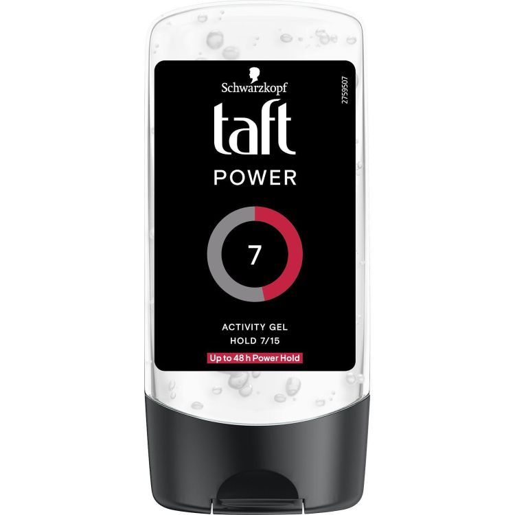 Taft Power Activity Gel Caffeine Formula 48h Strength&Energy Mega Strong е водоустойчив гел за коса с мега силна фиксация и формула съдържаща кофеинови съставки, осигуряващи фиксация без слепване. Стилизантът има дълготрайна фиксация без слепване и остатъци по косата. Продуктът е със специално създадена формула, която не утежнява и не изсушава косата, като в същото време има UV защита и предпазва косата от слънчевите лъчи и вредното влияние на околната среда. След употребата му косата Ви ще бъде мека, добре фиксирана и със зашеметяващ блясък.