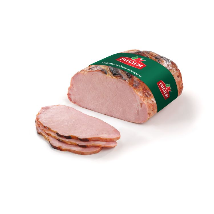 Състав: Свинско контрафиле 80%, вода, сол, СОЕВ протеин, сгъстител карагенан, стабилизатори натриев трифосфати, натриев полифосфати, антиоксиданти натриев еритробат, натриев аскорбат, консервант натриев нитрит, ароматизанти, екстракти от подправки, захари.