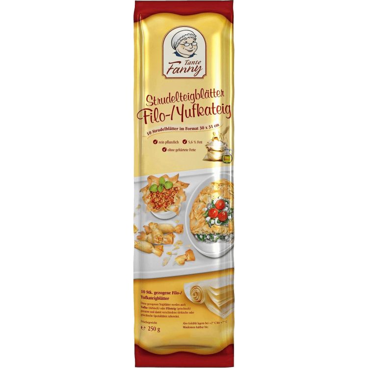 Пресните сладкиши на леля Фани се доставят с 10 листа сладкиши във вашата кухня. Там можете да долеете и навиете, печете или пържите в олио до насита и международното удоволствие от храна е готово.