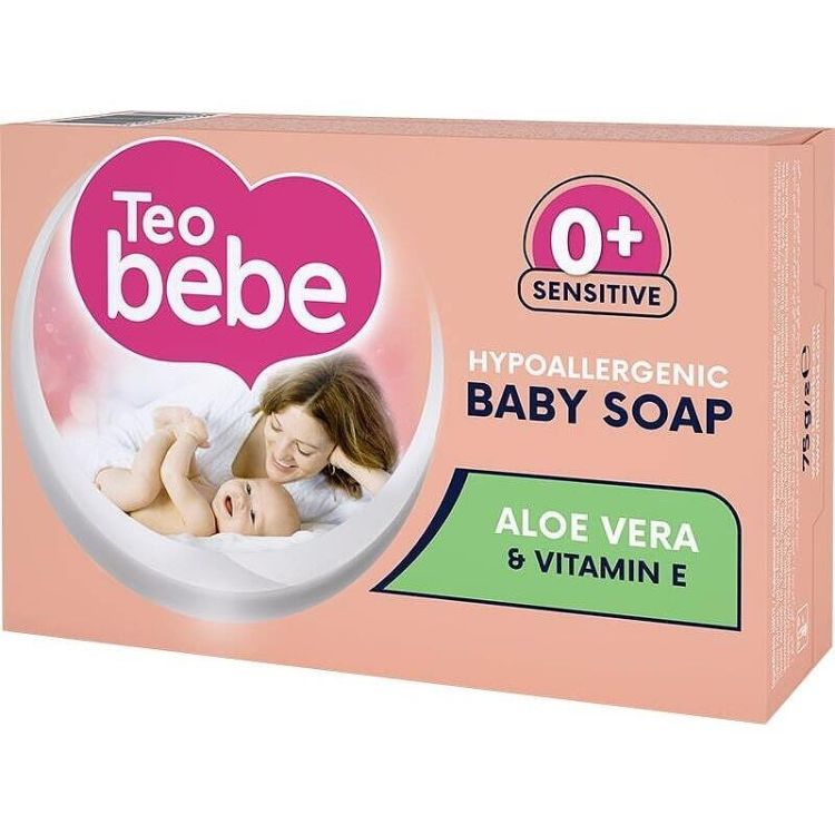 Teo Bebe Hypoallergenic Baby Soap Aloe Vera е специално създаден бебешки крем-сапун с екстракт от алое вера и хипоалергенна формула с успокояващо действие, която измива деликатно без да изсушава кожата. Съдържанието на витамин Е и екстракт от алое вера успокояват, подхранват и правят кожата на вашвто бебе изключително мека, което го прави особено подходящ не само за ежедневно измиване, но и за вечерното къпане. Крем-формулата е с омекотяващ комплекс, който прави кожата мека и гладка, като в същото време остява нежен аромат.