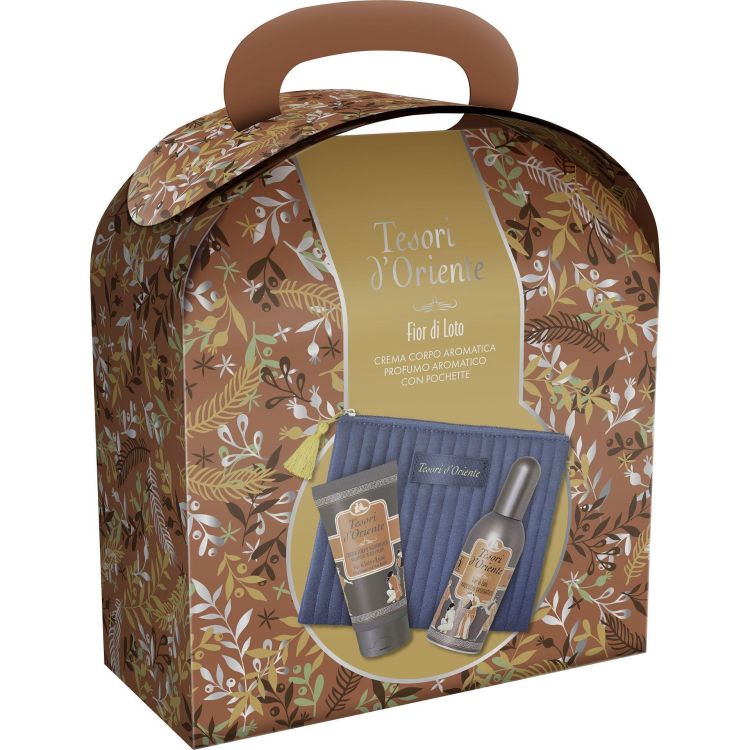 Подаръчният комплект Tesori d'Oriente Fior di Loto съчетава чувствен аромат и подхранваща грижа за кожата. Вдъхновен от красотата на лотоса, този комплект включва тоалетна вода и крем за тяло с нежен, женствен и изтънчен аромат. Композицията разгръща свежи плодови и флорални нотки, преливащи в топла, дървесно-мускусна база. Кремът е обогатен с масло от ший, което има антиоксидантни, подмладяващи и регенериращи свойства, и мляко от акация с подхранващо и овлажняващо действие. Подходящ за ежедневна употреба и всеки тип кожа.