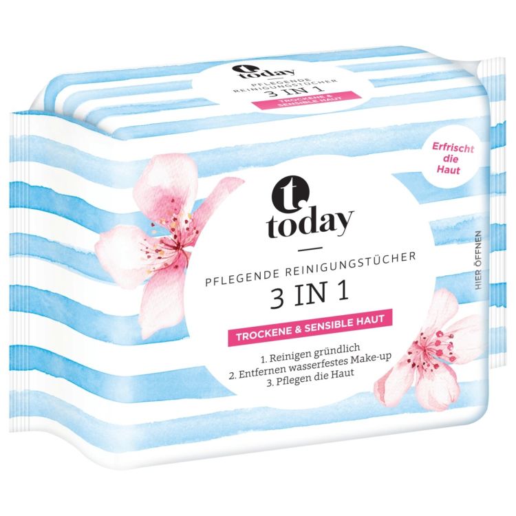Today почистващи кърпички за лице 3в1 с бадемово масло (25 бр.)