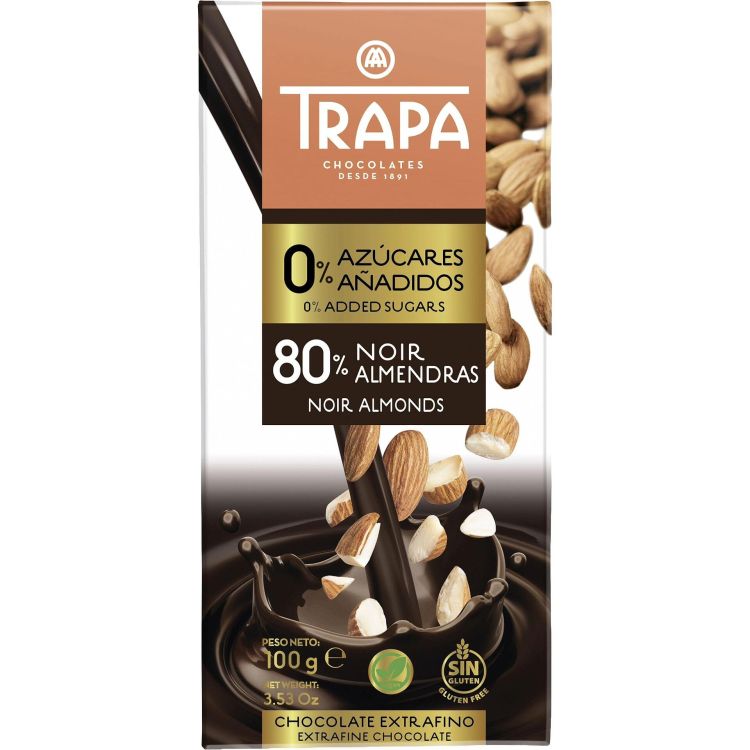 Trapa черен шоколад 80% с бадеми без захар, 100 г