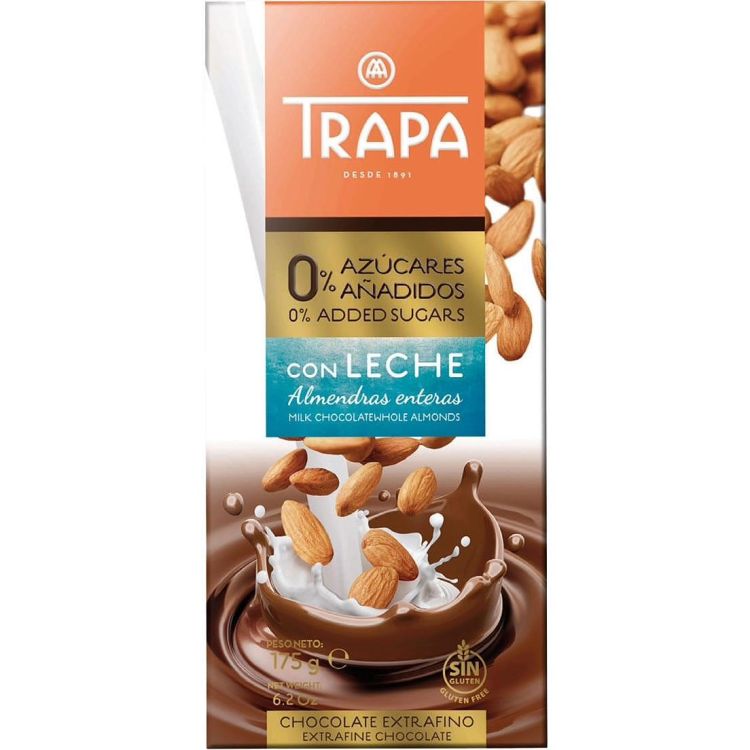 Trapa млечен шоколад с бадеми и подсладител, 175 г