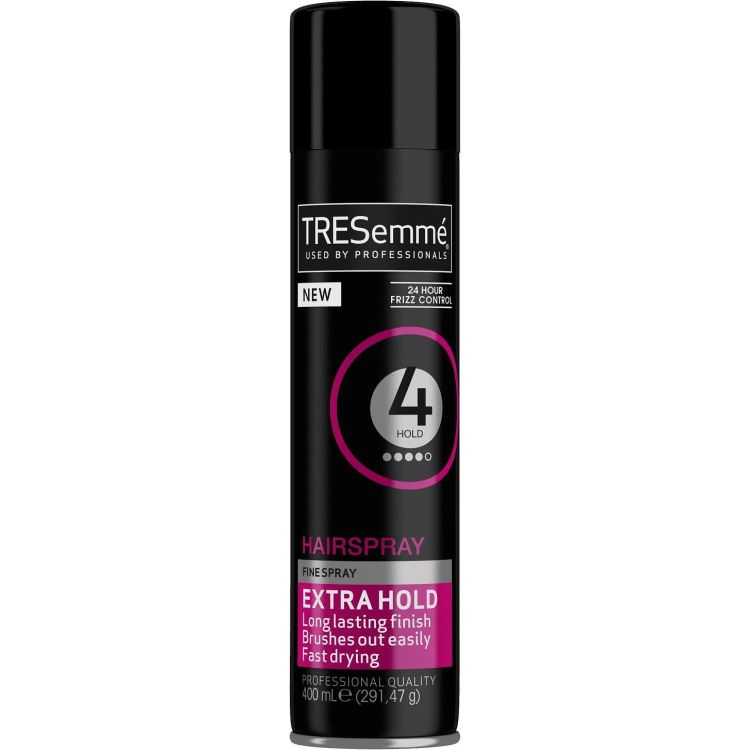 Tresemme Extra Hold Hair Spray представлява лак за коса със силна фиксация без слепване и следи от засъхване. Стилизантът има дълготрайна фиксация с професионална формула, която бързо изсъхва и позволява лесно разресване, не утежнява и не изсушава косата, като в същото време позволява добре оформена прическа със зашеметяващ блясък само за секунди.