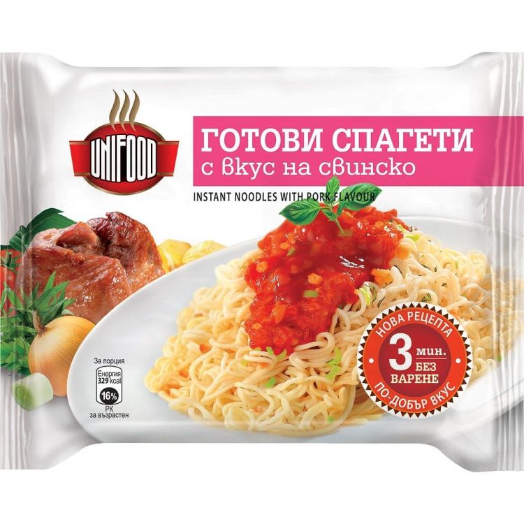 70 гр. Готови спагети с вкус на свинско са вкусни, удобни и бързи за приготвяне.