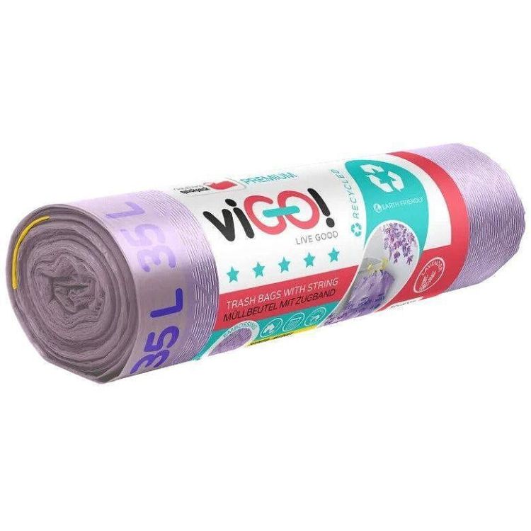 viGO! Premium торби за смет с връзки, лавандула, 35 л (12 бр.)