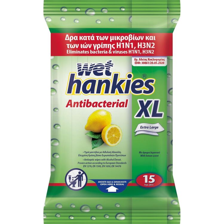 Wet Hankies Lemon XL антибактериални влажни кърпи (15 бр.)