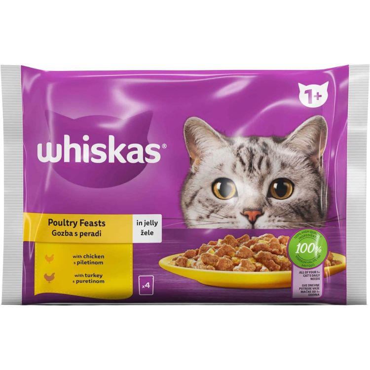 Whiskas пауч птичи ястия, 4 бр. x 85 г, 340 г