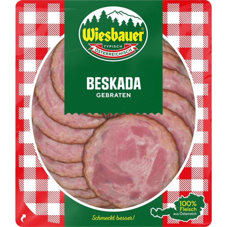Виенски колбасен специалитет от семейство Визбауер. Wiesbauer деликатесен салам бескада, направен от постно месо; Печен на сухо в комбинация с опушване върху ароматна букова дървесина, след това изсушен на въздух при специални условия в климатична стая.