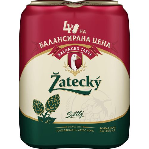 Zatecky Hus светла бира, 4 бр. х 500 мл, кен (2 л)