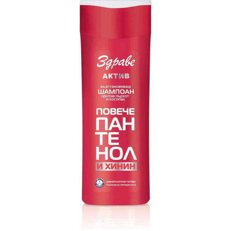 Здраве Актив възстановяващ шампоан против косопад и пърхот с пантенол и хинин (200 мл)