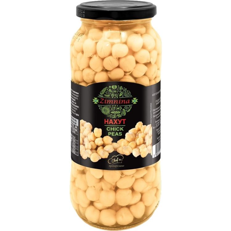 Консервиран нахут, подходящ за директна консумация или за приготвяне на различни ястия като салати, хумус, супи и гарнитури.