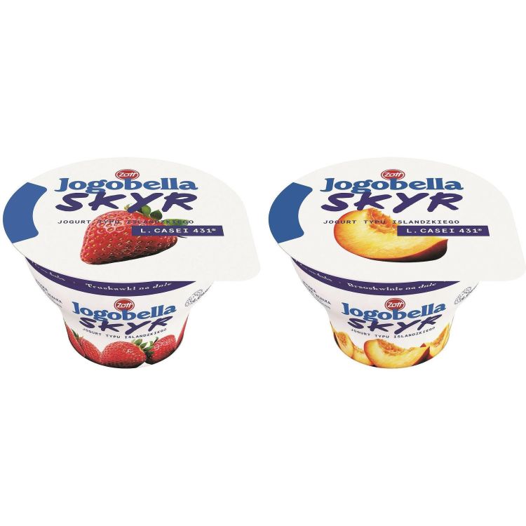 Високопротеинов скир йогурт Zott Jogobella с два плода вкуса – ягода и комбинация от праскова и маракуя. Продуктът съчетава кремообразна текстура, свеж плодов вкус и ниско съдържание на мазнини. Подходящ за балансирана закуска, десерт или междинно хранене.